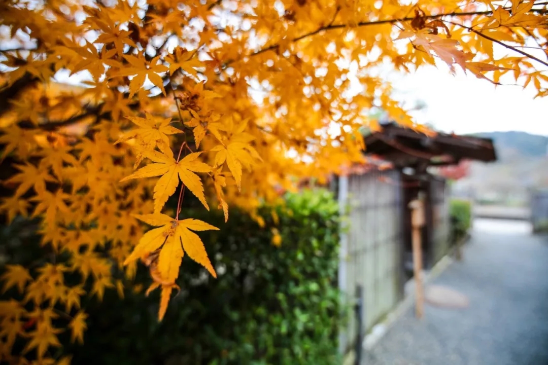 日本的枫叶季可以持续3个月,不同层次的青绿色,嫩黄色,砖红色,赤褐色交替在一起,韵味十足。